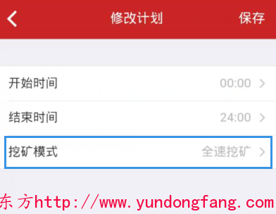 进入赚钱宝监控的界面,然后点击一台正在工作中的赚钱宝。在设置界面中就可以看到挖矿计划,在这里就可以调节挖矿的模式。