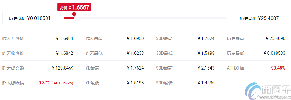 艾达币市值26.95亿美元,占全球总市值的1.01%,流通总量259.27亿,24小时成交额8.98亿美元,上架了108交易所。