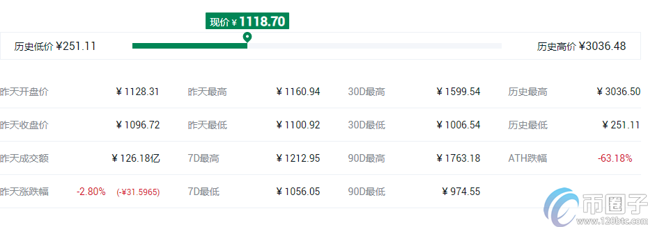 以太坊市值507.24亿美元,占全球总市值的10.1%,流通总量1.13亿,24小时成交额77.87亿美元,上架了324交易所。