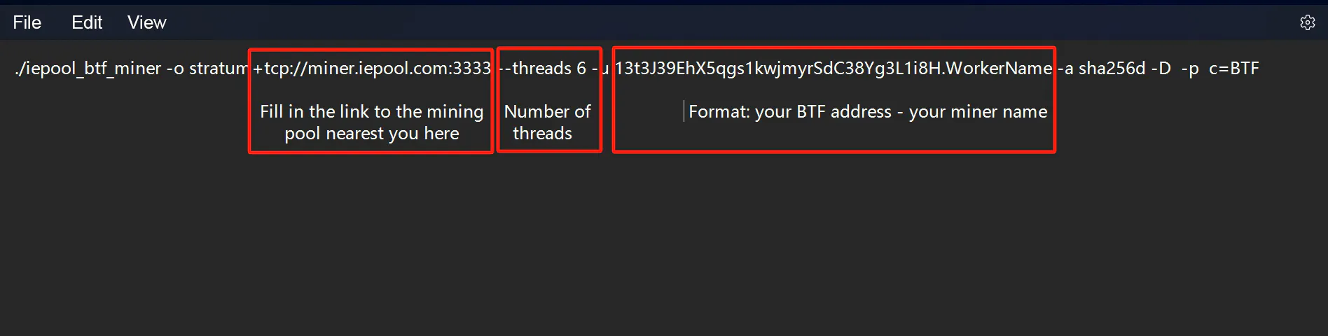 (2). 编辑 BAT 启动脚本并将其替换为您自己的脚本 钱包地址。您可以自定义机器名称(矿工名称),如 图: