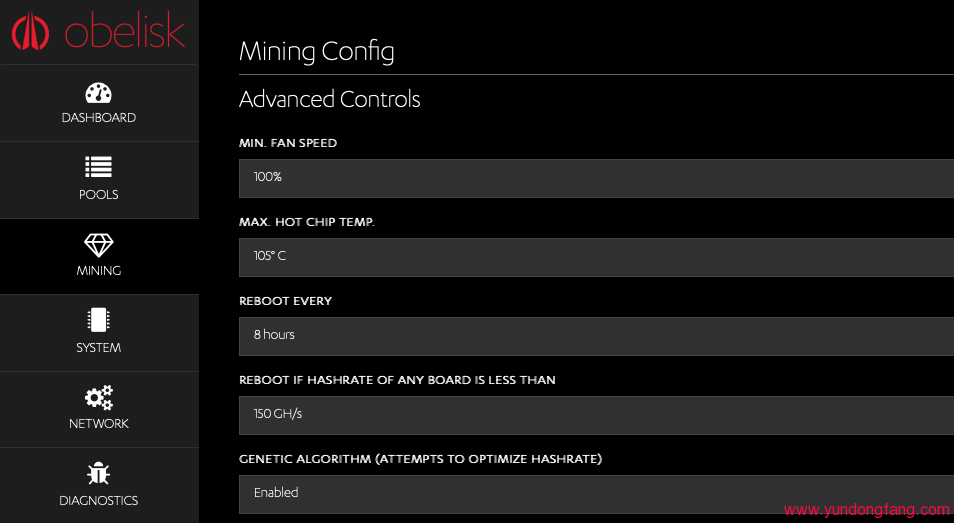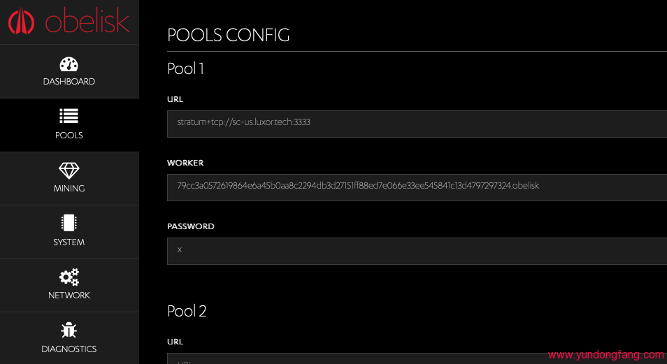 在您的矿工插入电源后,以正确配置启动并连接到以太网后,您可以继续使用方尖碑仪表板来配置您的池。