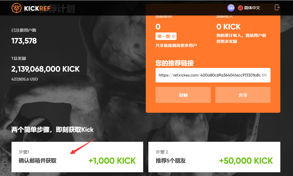 感谢您加入KickEX推荐计划!
