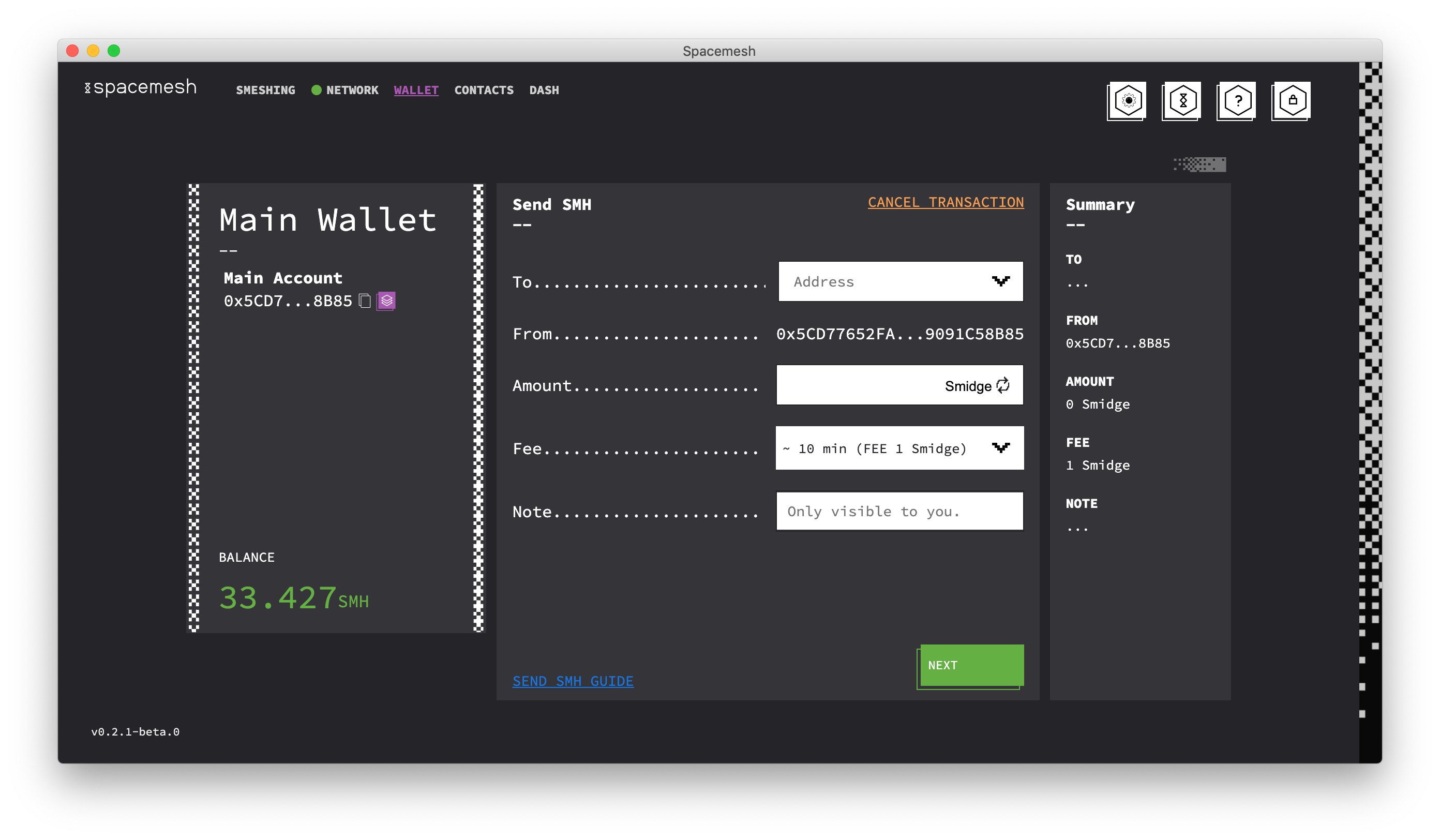 将此帐户视为您的加密银行帐户。您可以使用此帐户持有SMH并发送和接收SMH硬币。