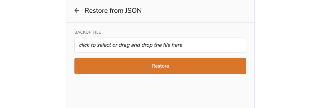 点击上传 JSON 文件,并输入此前使用过的密码。点击 Restore,导入完成。 ![]()